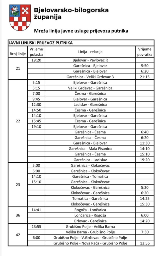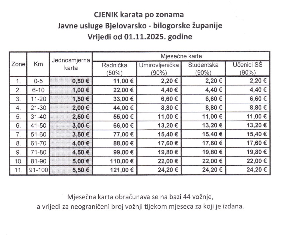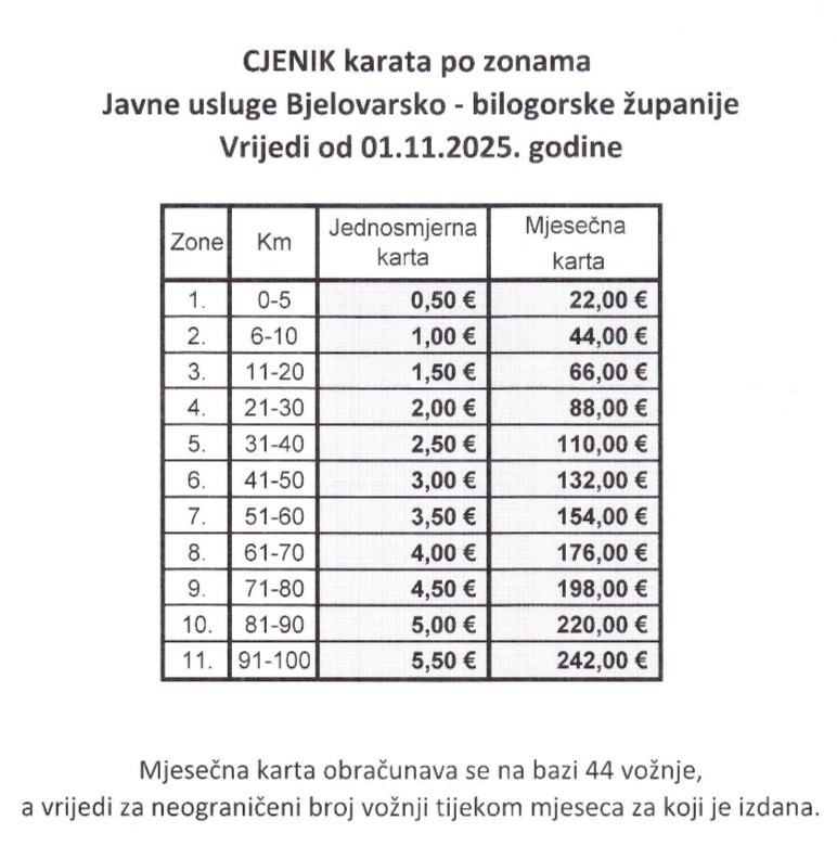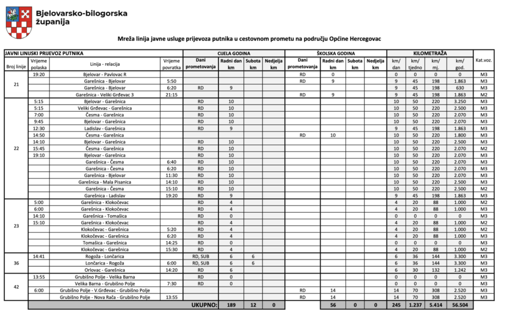 Javna usluga prijevoza putnika u cestovnom prometu – raspored linija i cijene: